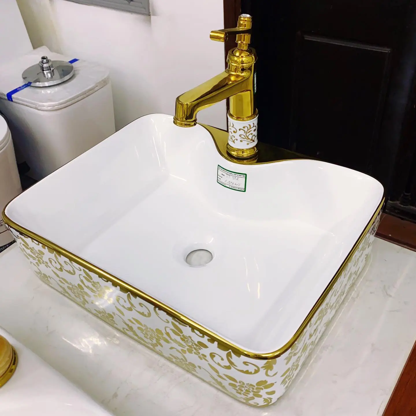 Chậu Lavabo Hoa vàng Chữ nhật – Gahasa – Thiết bị vệ sinh cao cấp